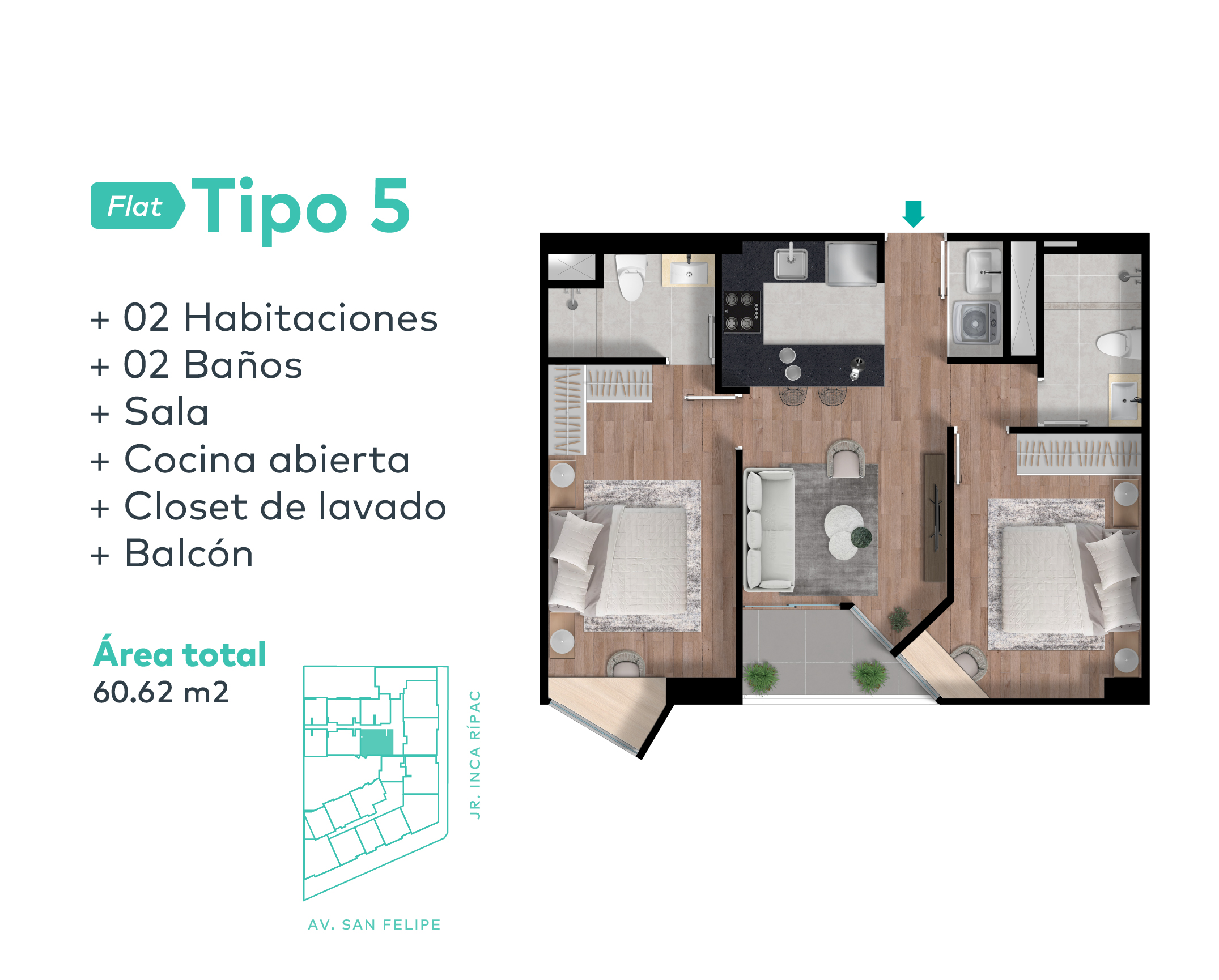 Los presentes Términos y Condiciones regulan las ventas y separaciones que se realicen, así como el uso del portal web, propiedad de INJUANDEALIAGA PROYECTOS S.A.C., en adelante la empresa, con domicilio para estos efectos en Av. Del Parque 275, San Isidro. Toda persona que utilice este portal web declara que acepta los siguientes términos y condiciones: